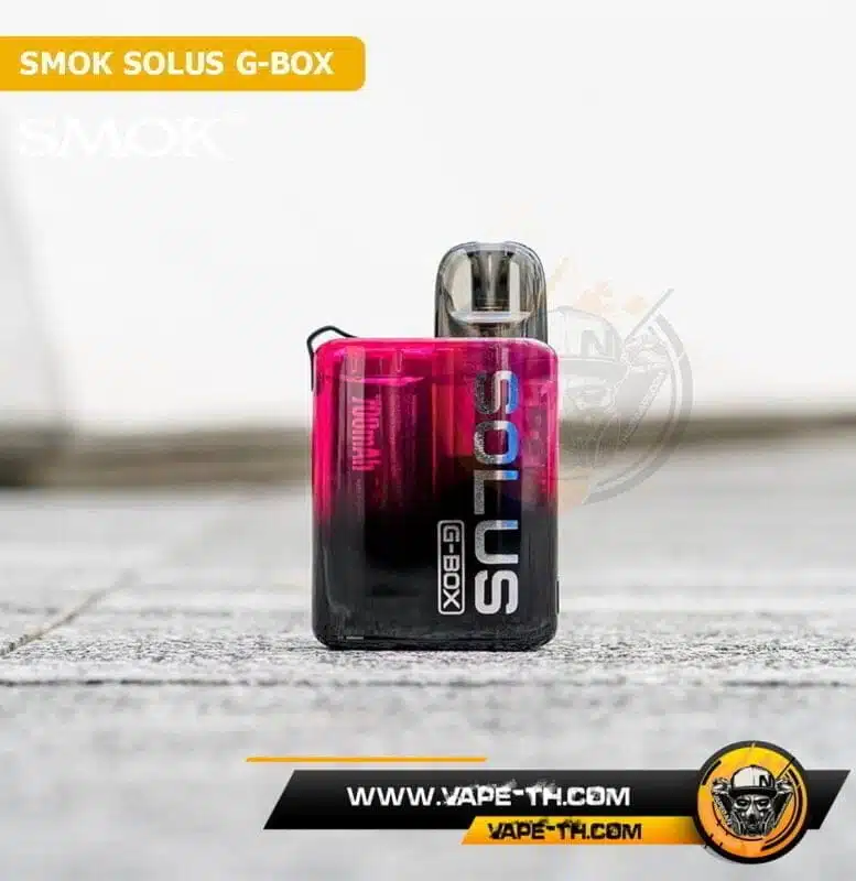 รีวิว SMOK SOLUS G-BOX POD KIT เป็น บุหรี่ไฟฟ้า แบบ พอตไฟฟ้า ที่มีการออกแบบดีไซน์ที่โปร่งใส มีลวดลายที่สวยงาม มาพร้อมแบตเตอรี่ขนาด 700mAh ใช้ได้ตลอดทั้งวัน และยังมีสายคล้องคอให้ด้วย คอยล์ ที่สามารถใช้ได้จะเป็น คอยล์ Solus 0.9 โอห์ม เป็นคอยล์แบบขดลวด เป็นคอยล์ที่ตรงรุ่น รีดกลิ่นกับรสชาติได้ดีมากๆ คอยล์จะเป็นแบบสำเร็จรูปพร้อมแท็งค์ ใช้งานง่ายเพียงนิดเดียว แค่เติมน้ำยา รอ 10-15 นาที ก็สามารถใช้งานได้เลย ไม่ต้องกลัวเรื่องการรั่วซึมของน้ำยา เพราะทางค่าย SMOK ได้ทำการแก้ไขปัญหาการรั่วซึมมาเป็นอย่างดี หมดข้อกังวลได้เลยครับ เหมาะกับผู้ใช้มือใหม่ที่ชื่นชอบการสูบแบบ MTL, DTL, แบบออโต้ เหมาะกับ น้ำยา ซอลนิค สายชิว ที่ชื่นชอบความนุ่มนวล ละมุน มาเต็มทั้งกลิ่นและรสชาติ ผมขอแนะนำ SMOK SOLUS G-BOX POD KIT ไม่ผิดหวังแน่นอนครับผม สวยสะดุดตาแตก