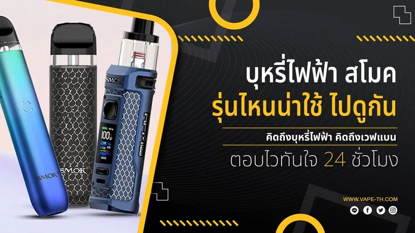 บุหรี่ไฟฟ้า สโมค Smok เป็นอีกหนึ่งแบรนด์ผู้ผลิต บุหรี่ไฟฟ้า ยอดนิยม ในอุตสาหกรรมบุหรี่ไฟฟ้า โดยทางแบรนด์ Smok ได้ผลิต และ เปิดตัวบุหรี่ไฟฟ้า ทั้ง Mod Box และ พอตไฟฟ้า ออกมาได้ทั้งหมด 99+ ชิ้นด้วยกันเลย และ ยังได้ผลิต พอตใช้แล้วทิ้ง ออกมาอีกมากมายเลยครับ เราไปดูกันเลยครับ ว่าจะมี บุหรี่ไฟฟ้า สโมค รุ่นไหนน่าใช้งานบ้าง ทางร้าน เวฟแบน รวบรวมมาให้แล้วครับ เราไปดูกันเลย