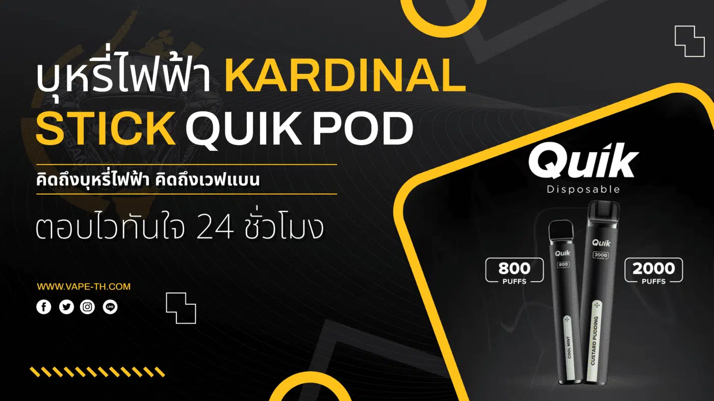 บุหรี่ไฟฟ้า QUIK เป็น บุหรี่ไฟฟ้า แบบ พอตใช้แล้วทิ้ง จากทางแบรนด์ KARDINAL STICK ได้ออกแบบ
