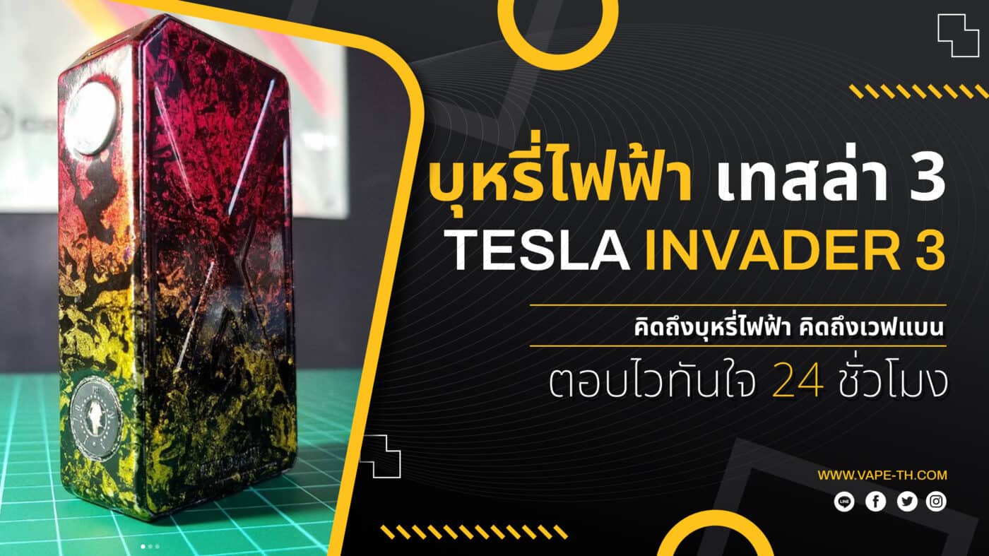 ตัวเครื่อง TESLA INVADER 3 มีดีไซน์สีสันสวยงาม ไม่สามารถชาร์จได้แบตเตอรี่ได้ แต่ชาร์จถ่านแบบรางถ่านได้ เป็นแบตเตอรี่แบบถ่าน 18650 สองก้อน จ่ายกำลังไฟได้มากสุดถึง 240W ถูกออกแบบให้ใช้งานคู่ อะตอม เกลียว 510 ได้ แถมมีไฟ LED บอกสถานะตัวเครื่อง ได้อีกด้วย VAPEBAN ขอแนะนำเลยครับ ราคาถูก จับต้องได้ คุณภาพดีสุดๆ ลูกเล่นเยอะ บอกเลย ห้ามพลาด