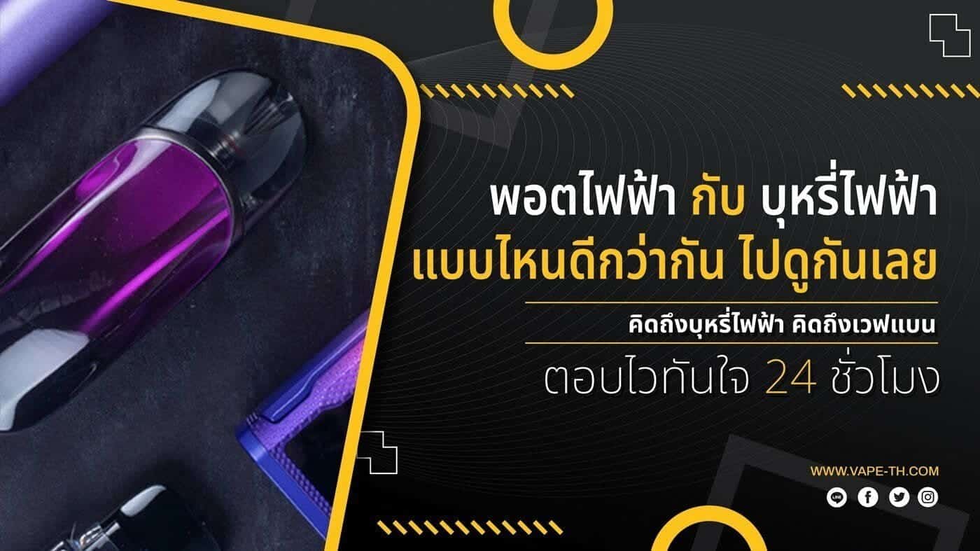 พอตไฟฟ้า กับ บุหรี่ไฟฟ้า ถ้าให้พูดถึงความต่างของแต่ละประเภท จะสามารถเห็นได้ชัดมากๆเลยครับ เพราะ พอตไฟฟ้า จะมีขนาดที่เล็กกระทัดรัดกว่า Mod Box และ พอตไฟฟ้า ยังสามารถใช้งานได้ง่ายกว่า Mod Box อีกด้วย แต่สำหรับ พอตไฟฟ้า จะมีฟังชั่น หรือ ลูกเล่นน้อยกว่า Mod Box เยอะเลยครับ สำหรับแต่ละประเภทก็ดีเหมือนกันเลยครับ ขึ้นอยู่กับความต้องการของผู้ใช้งาน ว่าต้องการ บุหรี่ไฟฟ้า แบบไหน สไตล์ไหน แต่ทางเวฟแบนของเรา ต้องบอกก่อนเลยครับ สำหรับสายควัน ที่ต้องการควันเป็นจำนวนมาก Mod Box ตอบโจทย์คุณได้แน่นอนครับ เพราะ Mod Box จะเหมาะสำหรับ น้ำยา ฟรีเบส มากที่สุด และ สำหรับผู้ใช้งานที่ต้องการ เลิกบุหรี่จริง พอตไฟฟ้า ช่วยคุณได้แน่นอนครับ เราไปดูกันเลยครับ ว่าจะมี พอตไฟฟ้า กับ บุหรี่ไฟฟ้า รุ่นไหนน่าใช้งานบ้าง Vapeban รวบรวมมาให้แล้วครับ เราไปดูกันเลยครับ