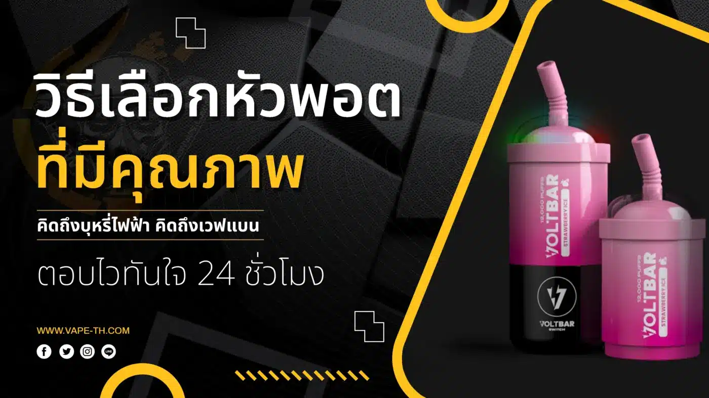 วิธีเลือกหัวพอต ที่มีคุณภาพ อย่างที่รู้กันว่า ในอุตสาหกรรม บุหรี่ไฟฟ้า ปัจจุบัน ได้มีแบรนด์ผู้ผลิต หัวพอตไฟฟ้า หรือ บุหรี่ไฟฟ้า ออกมามากมายเลย นั่นเอง ครับผม อย่างแรกเลยก็คือ ให้ผู้ใช้งานเลือก หัวพอตไฟฟ้า จากแบรนด์ผู้ผลิต ที่น่าเชื่อถือก่อน นั่นเอง ครับผม เพราะ แน่นอนว่า แบรนด์ผู้ผลิต ยอดนิยม จะสามารถการันตี คุณภาพของ หัวพอตไฟฟ้า ได้แน่นอนครับ และ ก่อนซื้อ ให้ผู้ใช้งานดู รีวิวสินค้า หรือ หัวพอตไฟฟ้า ที่ต้องการก่อน เพื่อให้รู้ว่า หัวพอตไฟฟ้า ที่จะซื้อ ตอบโจทย์เราได้จริง และ วิํธีการเลือกซื้อ หัวพอตไฟฟ้า อีกหนึ่งอย่างก็คือ ผู้ใช้งาน ควรเลือกปริมาณ น้ำยาบุหรี่ไฟฟ้า ให้เหมาะสมด้วย เพื่อป้องกัน ปัญหา น้ำยารั่วซึม หรือ กระเด็น นั่นเอง