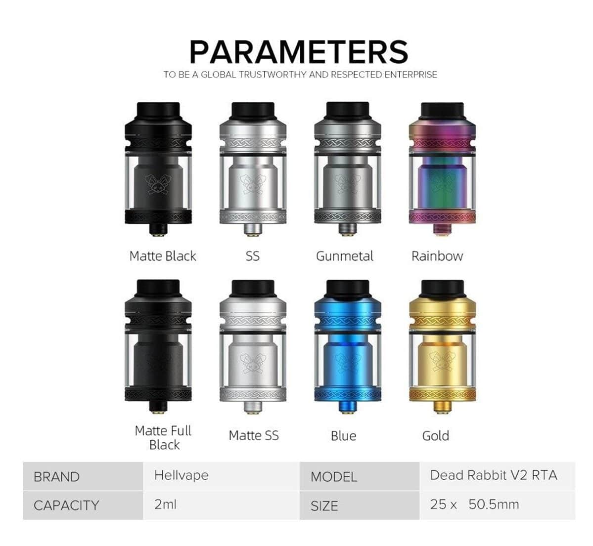 DEAD RABBIT V2 TANK เป็น อะตอมแทงค์ จากทางแบรนด์ Hellvape โดยตัวอะตอม DEAD RABBIT V2 TANK จะสามารถบรรจุน้ำยาบุหรี่ไฟฟ้าได้มากถึง 5 ml และ อะตอม DEAD RABBIT V2 TANK จะสามารถใช้งานร่วมกันกับตัวเครื่องที่มีฐาน 510 ได้อีกด้วย และ อะตอม DEAD RABBIT V2 TANK จะใช้งาน คอยล์บุหรี่ไฟฟ้า ประเภท ขดลวดคู่ ที่สามารถรับความร้อนได้เร็ว และ ยังสามารถรีดกลิ่น และ รสชาติได้เข้มข้นสุดๆ ขอแนะนำเลยครับกับอะตอม DEAD RABBIT V2 TANK ดีสุดๆ พลาดไม่ได้แล้ว