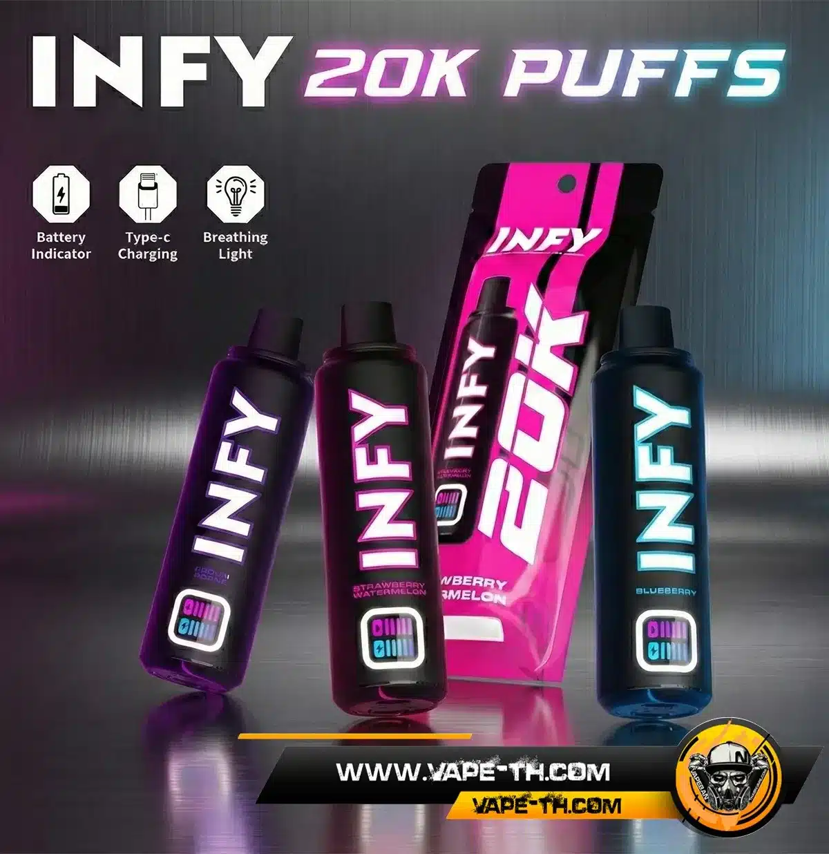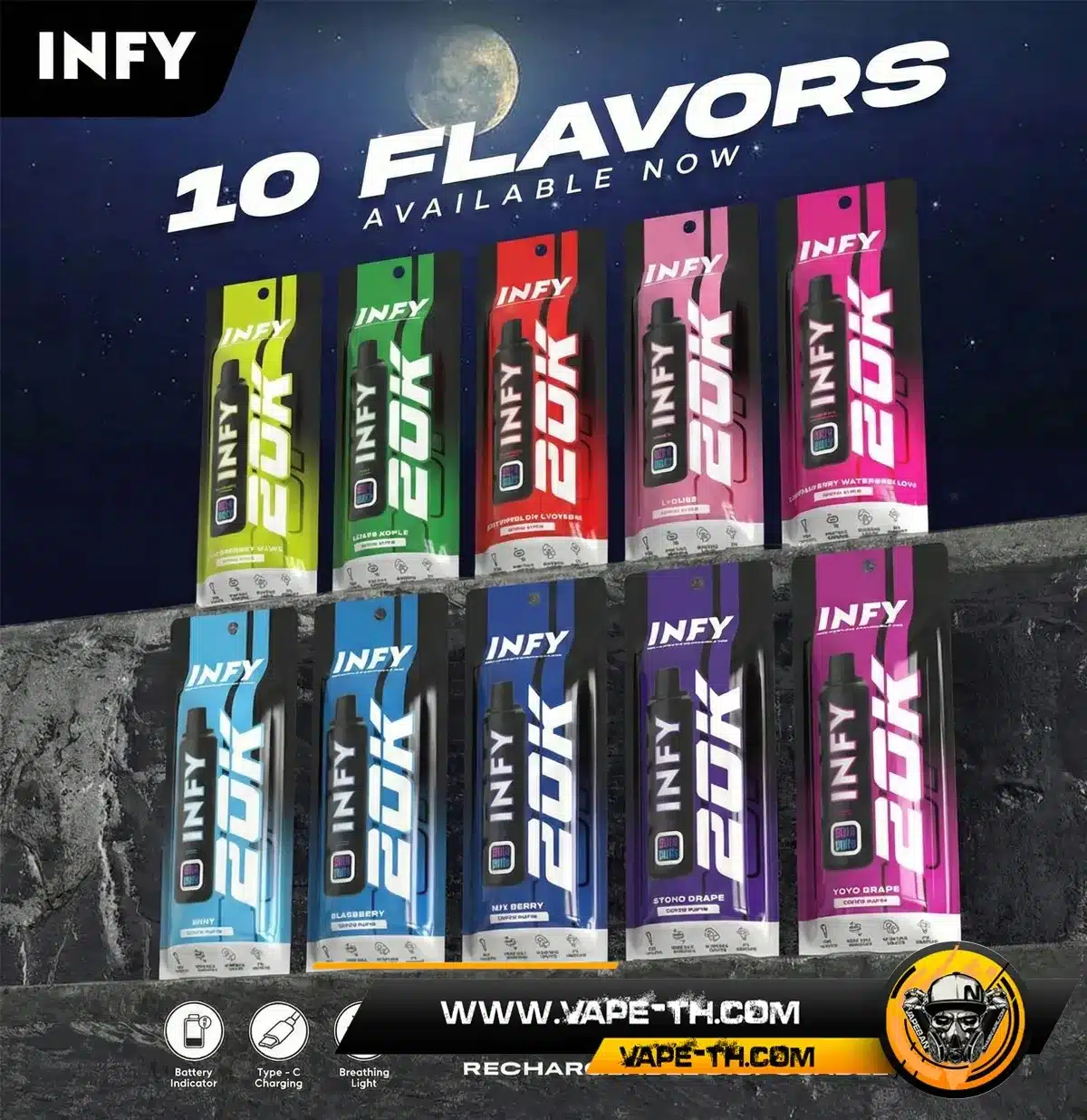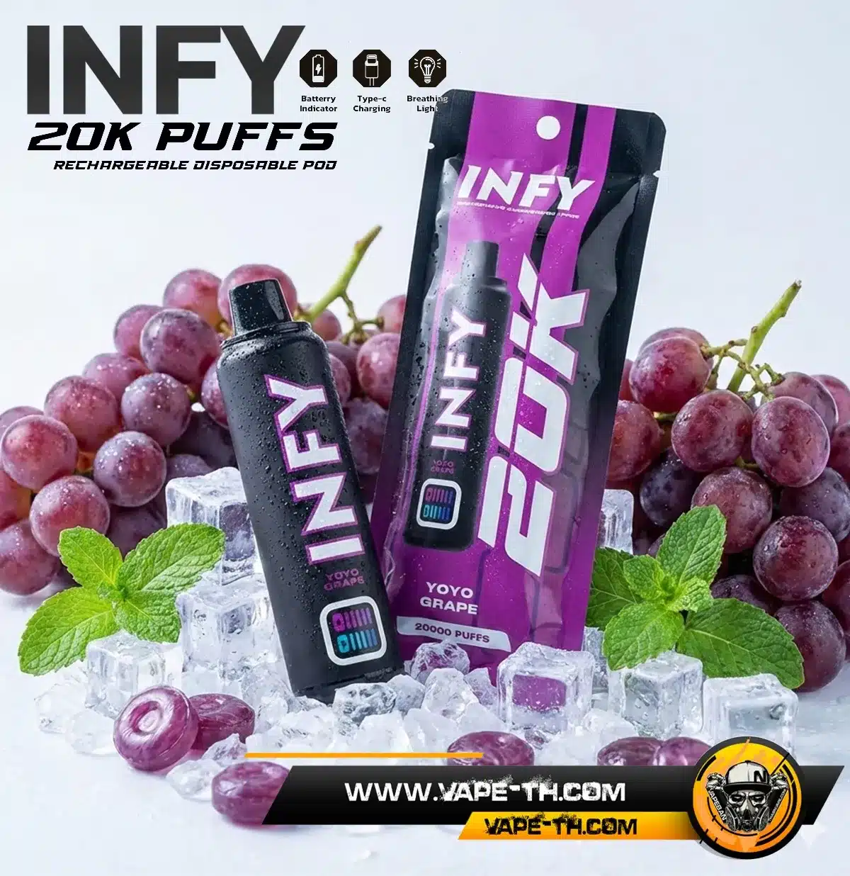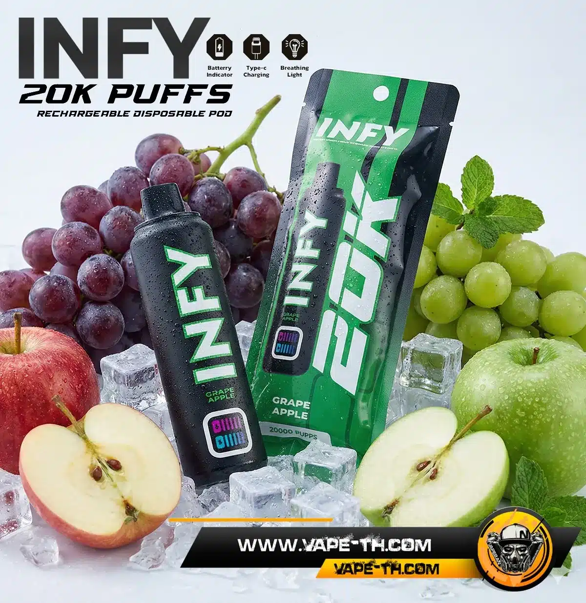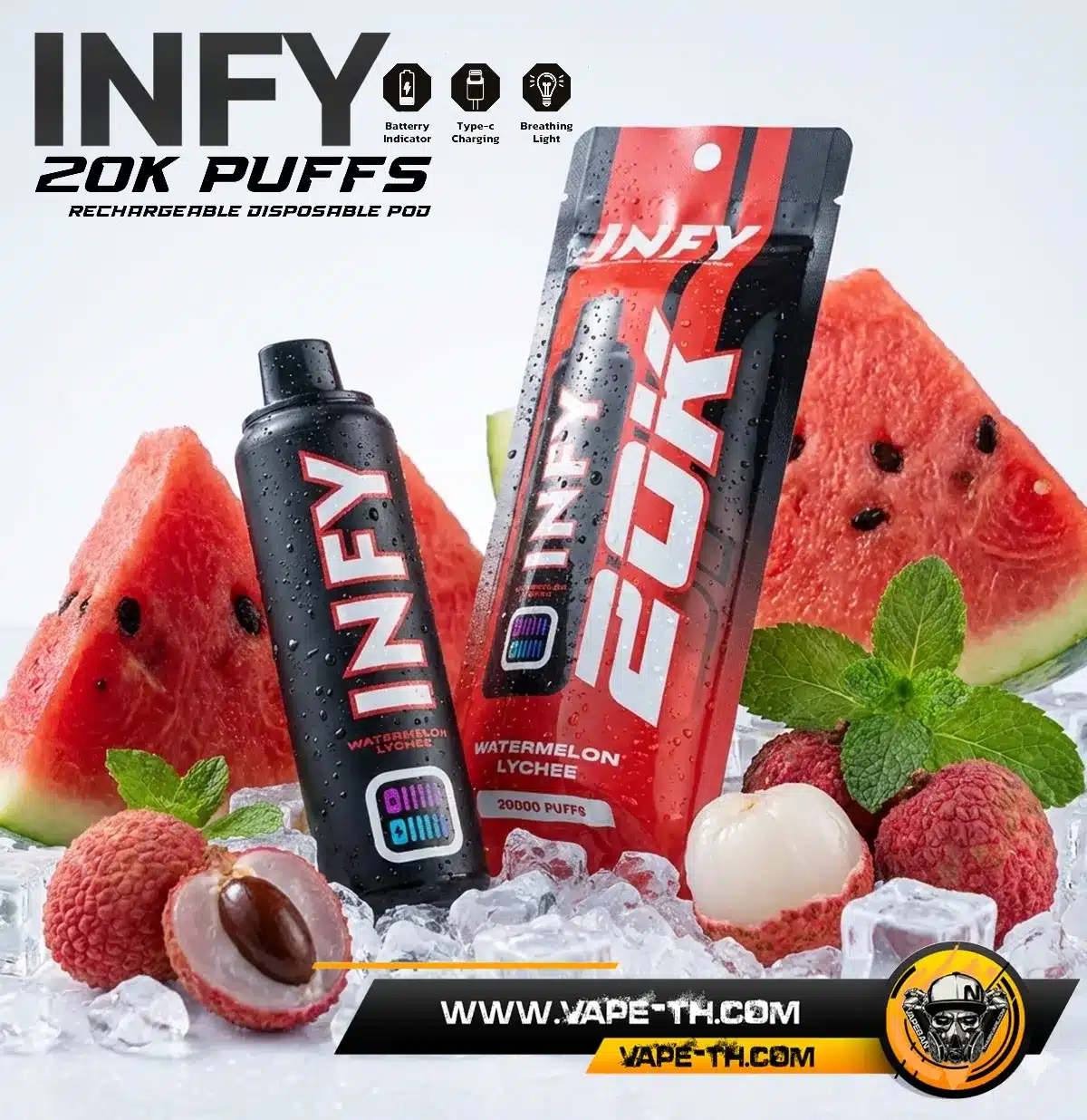 INFY 20000 PUFFS จากแบรนด์ This Is Salts รุ่นใหม่ล่าสุด พอตใช้แล้วทิ้งระดับพรีเมียม จำนวนคำสูบสูงถึง 20000 คำ มาพร้อม Smart LED Screen แสดงสถานะแบบเรียลไทม์ แบตเตอรี่ 600mAh ชาร์จ Type-C ใช้งานสะดวก คอยล์ Mesh Coil รุ่นใหม่ให้รสชาติสม่ำเสมอ มีให้เลือกมากถึง 10 รสชาติ ตอบโจทย์สายคุ้ม ใช้งานยาวจากสินค้าแบรนด์ This Is Salts