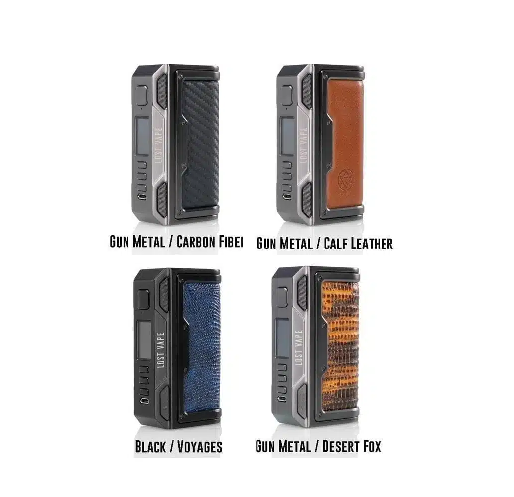 Lost Vape Thelema คลาสสิก มีสไตล์ และหรูหรามีทุกสิ่งที่คุณต้องการจากม็อดระดับเฟิร์สคลาส มาพร้อมชิป DNA250C และ เหนือสิ่งอื่นใด วัสดุเหล่านี้เป็นวัสดุระดับพรีเมียมที่จะดึงดูดความสนใจของคุณ วัสดุทำจากโลหะผสมสังกะสีคุณภาพสูง เสริมด้วยหนังแท้หรือคาร์บอนไฟเบอร์ ซึ่งทำให้ Thelema mod มีประกายแห่งความเป็นเอกลักษณ์ น่าสัมผัสมาก ดังนั้นตัวเครื่องจึงถือได้อย่างสะดวกสบายไม่เพียงเพราะการออกแบบ แต่ยังรวมถึงวัสดุที่ใช้ด้วย ด้วยโครงสร้างที่เป็นที่นิยม แผงแม่เหล็กที่สร้างขึ้นเป็นอย่างดี ทำให้แข็งแรง และไม่หลุดออกง่าย มาพร้อมกับการทำงานด้วยถ่านขนาด 18650 จำนวน 2 ก้อน และ ยังสามารถชาร์จได้อย่างรวดเร็วและสมดุล ไม่ทำให้เครื่องมีปัญหาหรือเสื่อมสภาพด้วยการชาร์จสายชาร์จ micro USB THELEMA DNA250C MOD