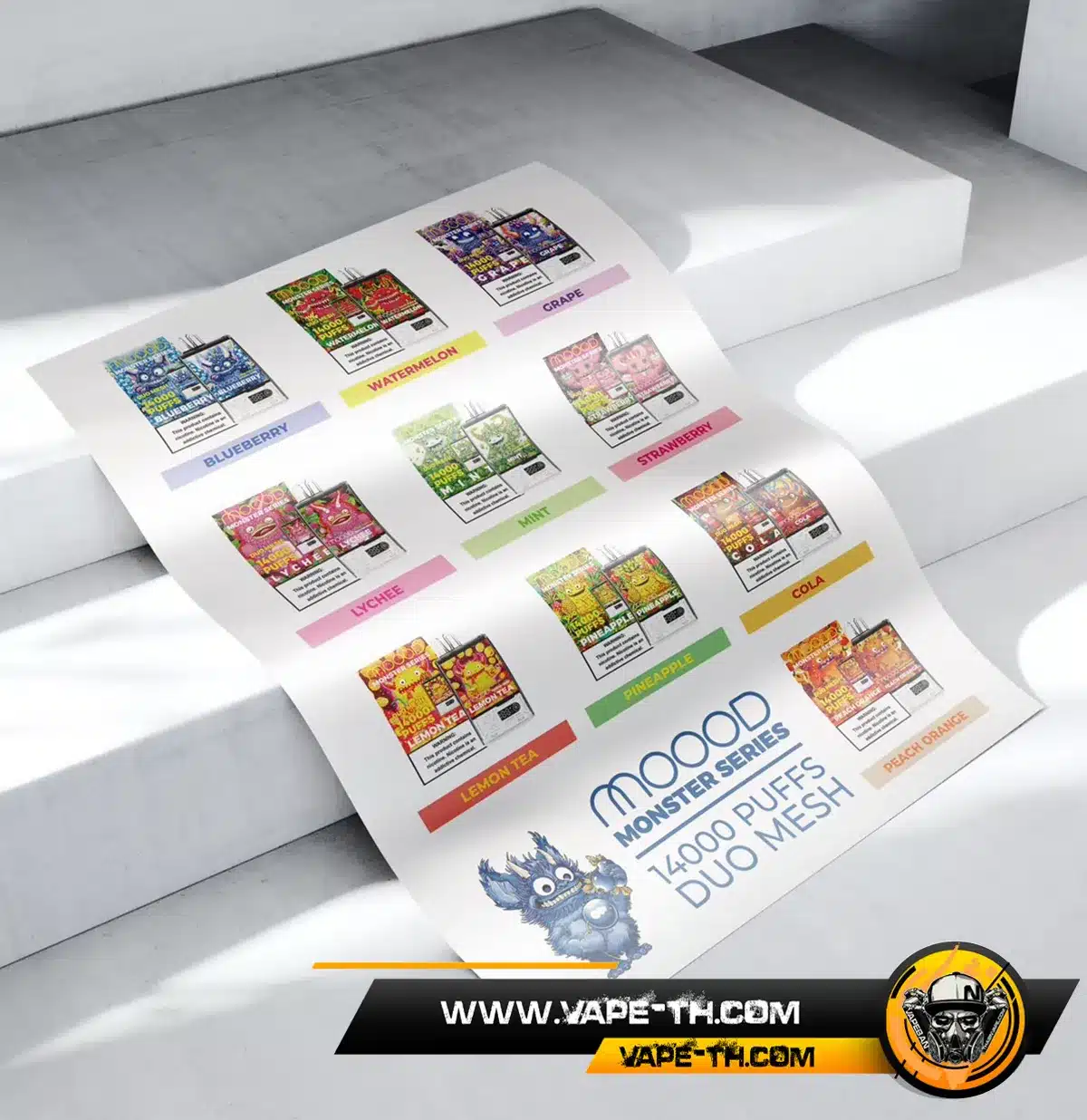 ตัวเครื่อง Monster Series 14000 Puffs จะไม่สามารถเติม น้ำยาบุหรี่ไฟ้า เข้าไปได้ ทำให้ผู้ผลิต Monster Series 14000 Puffs ได้ผลิตรสชาติ มาให้ถึง 10 รสชาติ และ จะมีอะไรบ้าง ไปดูกัน