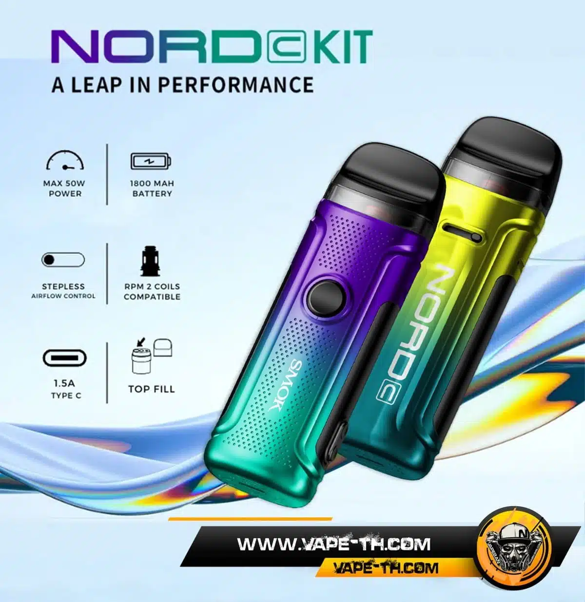 SMOK NORD C POD เป็น พอตไฟฟ้า จากทางแบรนด์ SMOK ที่จะสามารถจ่ายกำลังไฟได้ถึง 50 W เลยทีเดียวครับ โดยจะสามารถใช้งานได้ทั้ง น้ำยาบุหรี่ไฟฟ้าแบบ ฟรี