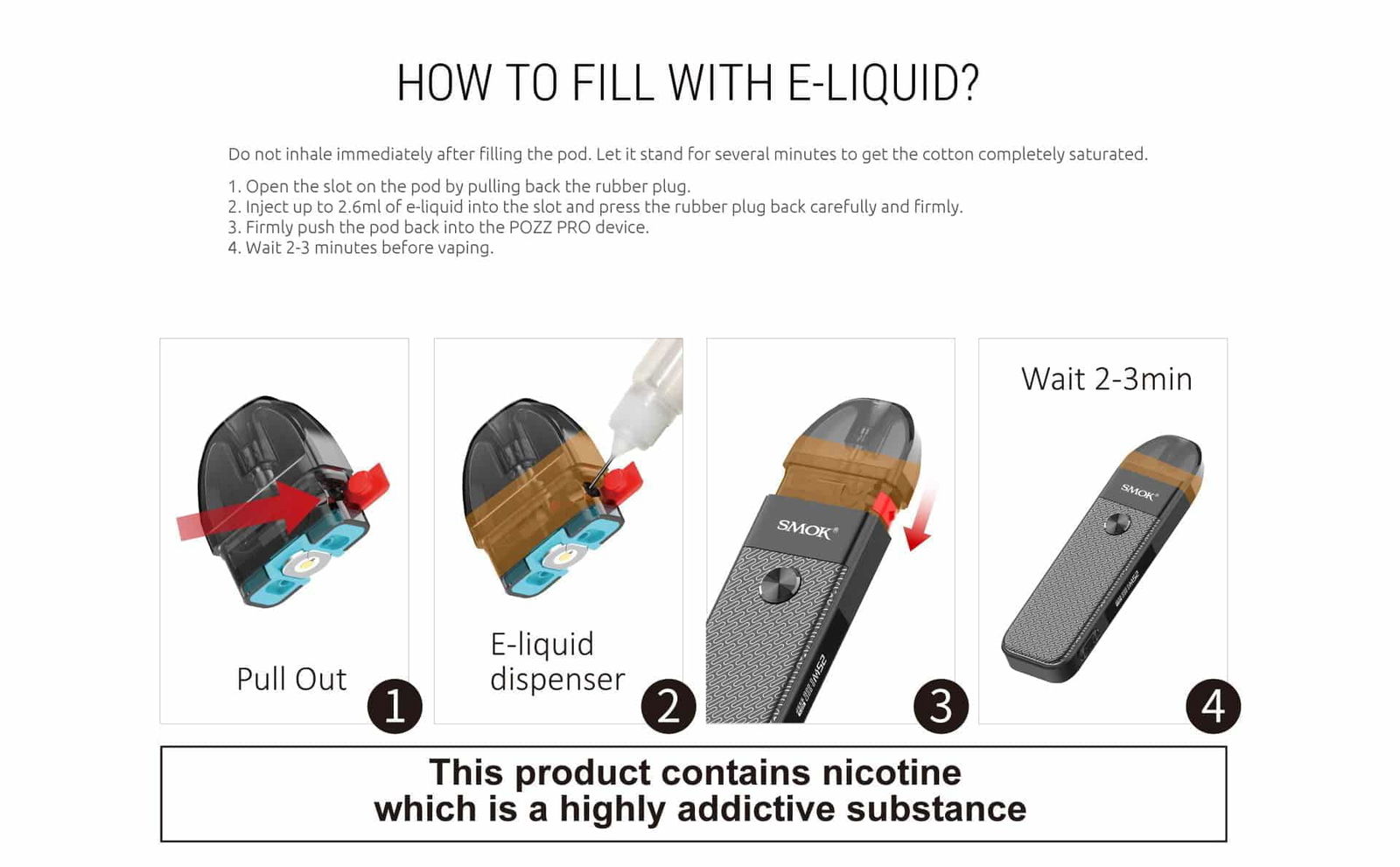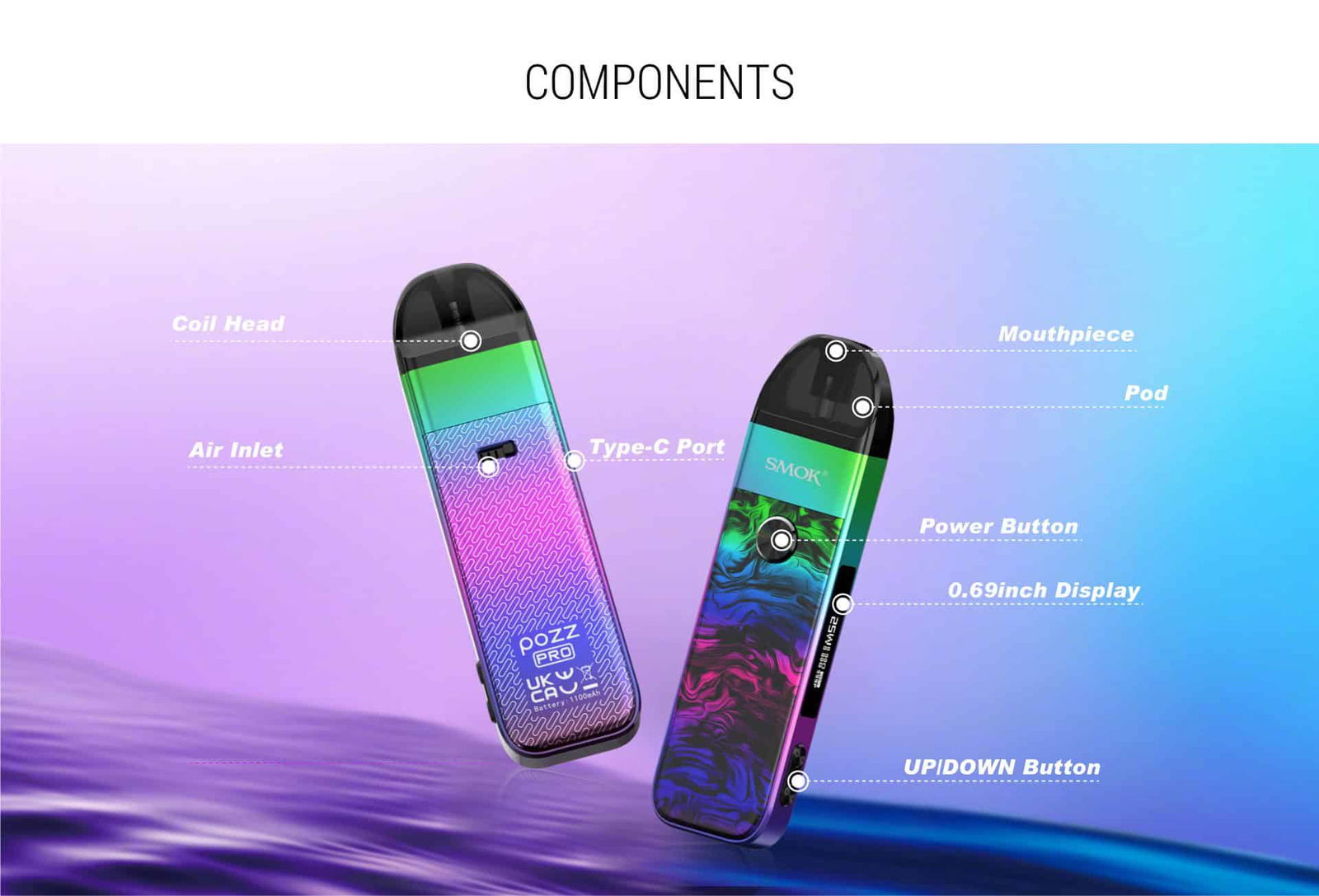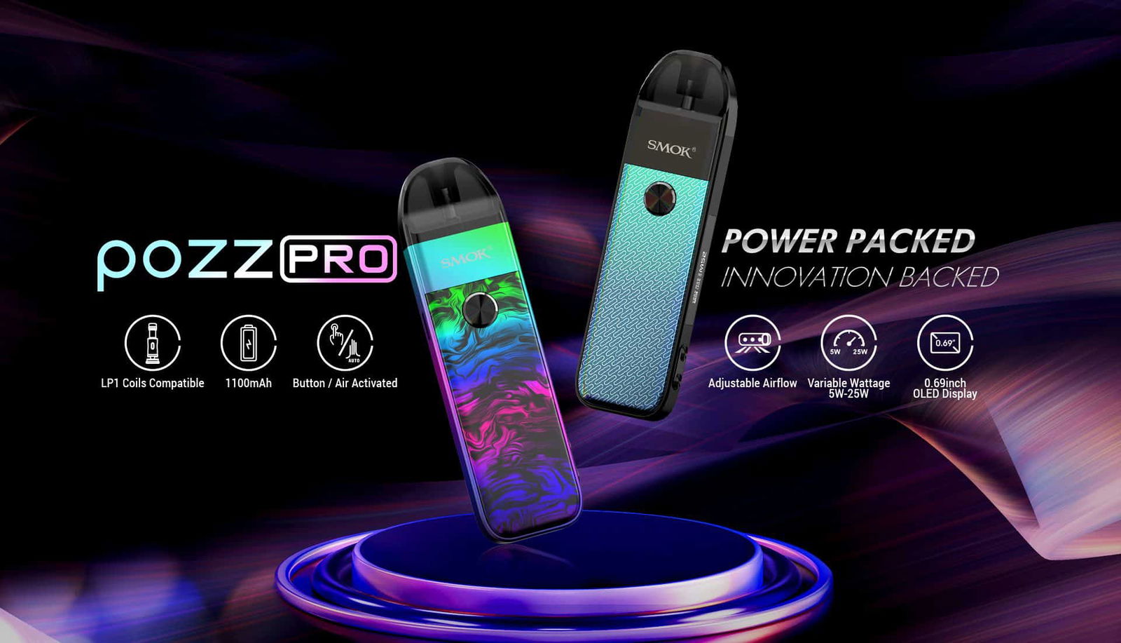 SMOK POZZ PRO ถูกออกแบบให้ใช้งานร่วมกับ คอยล์บุหรี่ไฟฟ้า KTR Mesh 0.8ohm ให้ฟิลสูบแบบ MTL ให้ฟิลสูบที่โล่ง นุ่ม ละมุ่น คล้ายบุหรี่มวน SMOK POZZ PRO เป็นแบตเตอรี่มีความจุ 1100mAh จ่ายกำลังไฟได้อยู่ที่ 5W-25W สามารถบรรจุน้ำยาได้ 2.6ml เหมาะกับ น้ำยา ซอลนิค บอกเลยว่าใช้คู่กันแล้ว จะกลมกล่อม และ รีดกลิ่รสชาติ ได้อย่างชัดเจนอีกด้วย ขอแนะนำเลยครับ SMOK POZZ PRO
