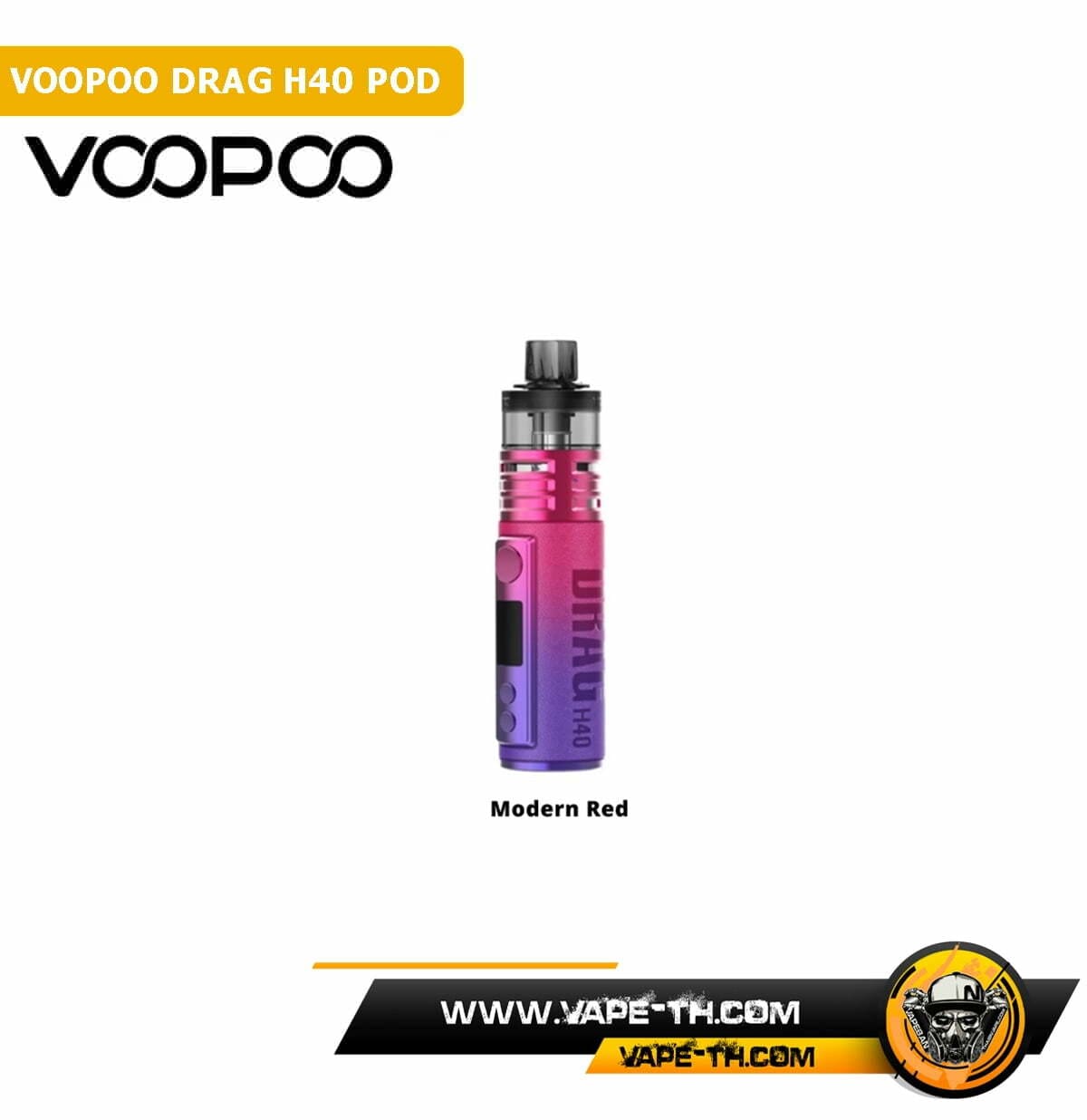 Voopoo Drag H40 Pod เป็น บุหรี่ไฟฟ้า แบบ พอตไฟฟ้า จากทางแบรนด์ Voopoo ที่มีดีไซน์สวยงาม ทันสมัย น่าใช้งานสุดๆ และ ได้มีการออกแบบมาให้ตัวเครื่อง
