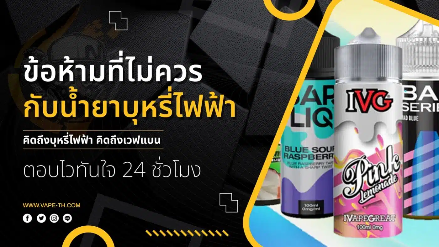 ข้อห้ามที่ไม่ควร กับน้ำยาบุหรี่ไฟฟ้า อย่างที่รู้กันว่า บุหรี่ไฟฟ้า ก็จะมีวิธีการใช้งาน และ ข้อห้าม ที่ไม่ควรทำ และ แน่นอนว่า น้ำยาบุหรี่ไฟฟ้า ก็มีเหมือนกัน นั่นเองครับผม