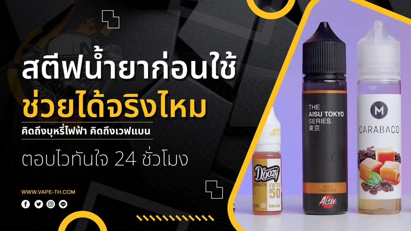 สตีฟน้ำยาก่อนใช้ ช่วยได้จริงไหม จริงๆแล้ว การสตีฟ น้ำยาบุหรี่ไฟฟ้า จะสามารถช่วยให้ น้ำยาบุหรี่ไฟฟ้า มีกลิ่น และ รสชาติที่เข้มข้นมากยิ่งขึ้น จริงๆครับผม เพราะ การสตีฟ น้ำยาบุหรี่ไฟฟ้า จริงๆแล้วก็เหมือนกับ การบ่นเหล้า หรือ ไวน์นั่นแหละครับ เพราะ การสตีฟ น้ำยาบุหรี่ไฟฟ้า จะเป็นการรอให้ ส่วนผสมของ น้ำยาบุหรี่ไฟฟ้า ผสมเข้ากันได้ นั่นเองครับผม และ ถ้าน้ำยบุหรี่ไฟฟ้า ผสมเข้ากันได้ดีแล้ว ก็จะทำให้ น้ำยาบุหรี่ไฟฟ้า มีกลิ่น และ รสชาติที่เข้มข้น และ หอมหวานมากยิ่งขึ้น นั่นเองครับผม