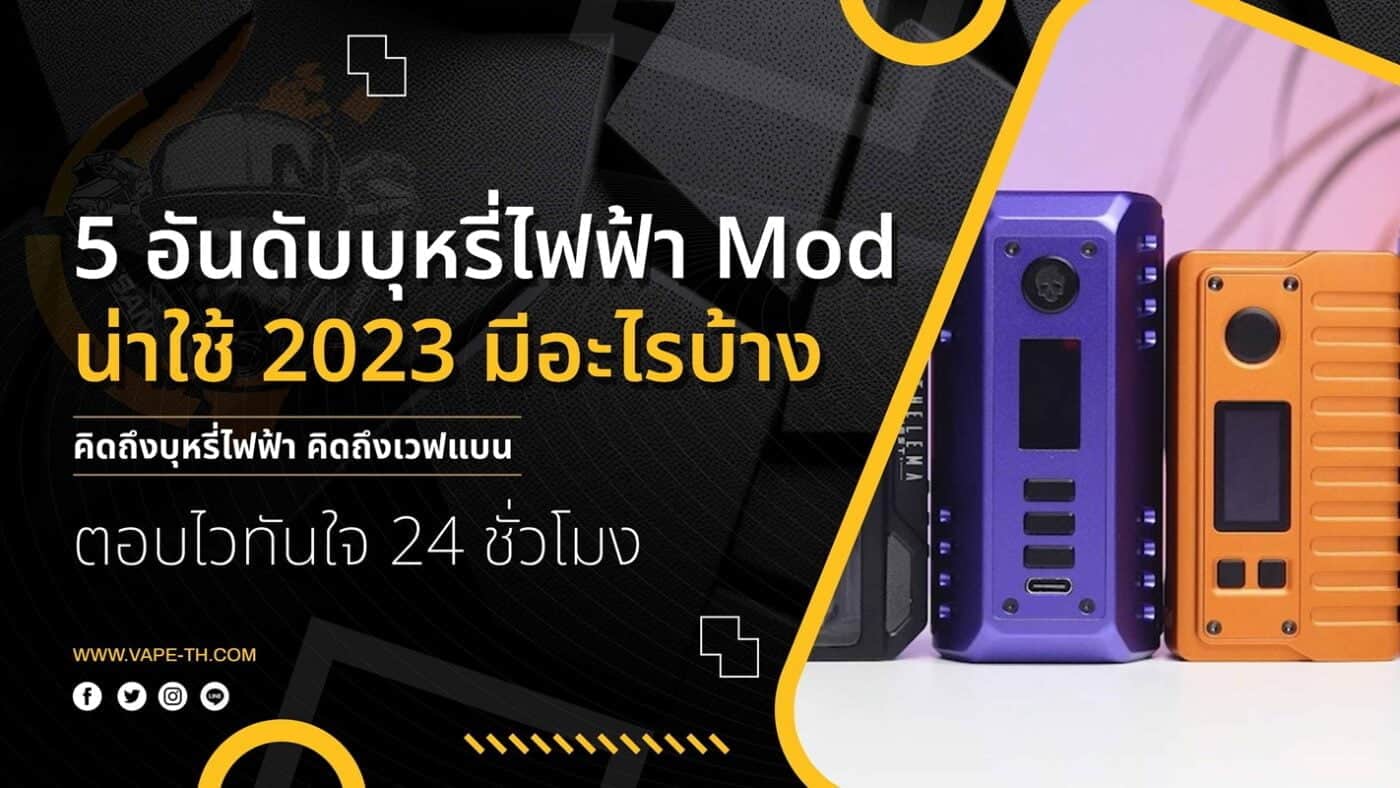 5 อันดับบุหรี่ไฟฟ้า Mod น่าใช้ 2023 จะมีมากมายเลยครับ และ อย่างที่รู้กันว่า บุหรี่ไฟฟ้า Mod เป็นอีกหนึ่งประเภทแรกๆของ บุหรี่ไฟฟ้า ในอุตสาหกรรมบุหรี่ไฟฟ้าเลยครับ และ แน่นอนว่า ต้องมีแบรนด์ผู้ผลิต ที่ผลิต และ เปิดตัว บุหรี่ไฟฟ้า Mod ออกมามากมาย เหมือนกันนั่นเอง และ สำหรับ ใครที่ยังไม่รู้ว่า จะเลือกใช้งาน บุหรี่ไฟฟ้า Mod รุ่นไหนดี ทางร้าน Vapeban ของเรา รวบรวมมาให้แล้วครับ และ สำหรับ บุหรี่ไฟฟ้า Mod น่าใช้ประจำปี 2023 จะมีรุ่นไหนน่าใช้บ้าง เราไปดูกันเลยครับผม